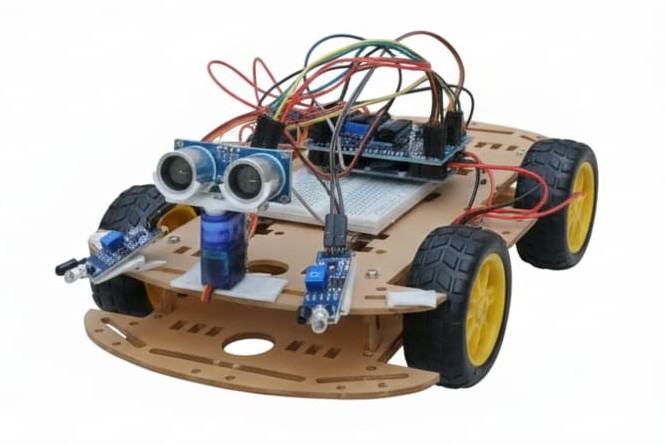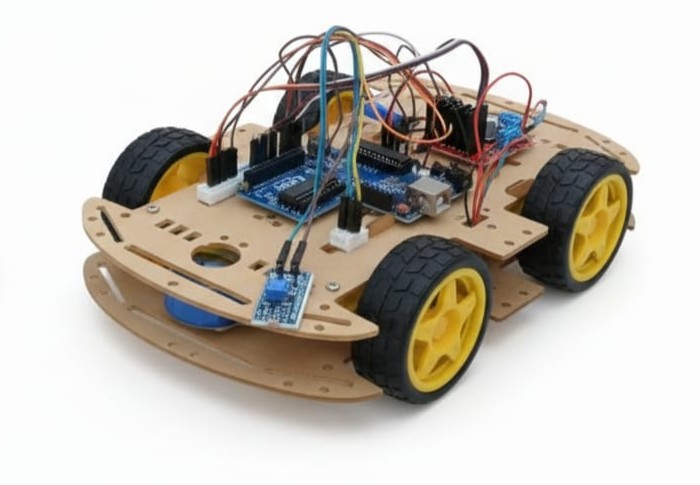 A smartphone-controlled robotic rover using Bluetooth communication (HC-05 / HC-06). Users can drive, steer, and control speed wirelessly while learning serial communication, motor drivers, and mobile-robot interfacing.